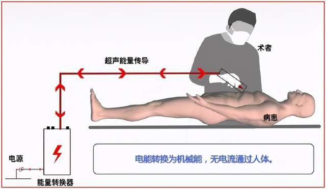 超声刀(ultrasonic scalpel)是一个能产生超声能量和机械振动的发生器,通过超声频率发生器作用于金属探头(刀头),以55.5kHz的频率通过刀头进行机械振荡(50-100μm),将电能转变成机械能,继而使组织内液体汽化、蛋白质氢链断裂、细胞崩解、蛋白质凝固、血管闭合,达到切开、凝血的效果。