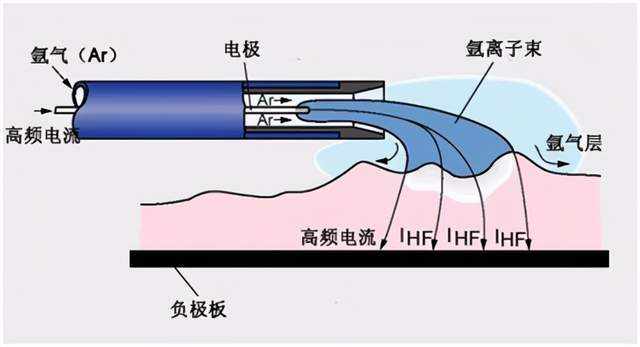 氩气刀是通过电离氩气产生氩等离子传导高频电流,使靶组织发生热效应,实现止血与组织失活效果的一种高频电刀。氩气刀又称为氩等离子凝固术。